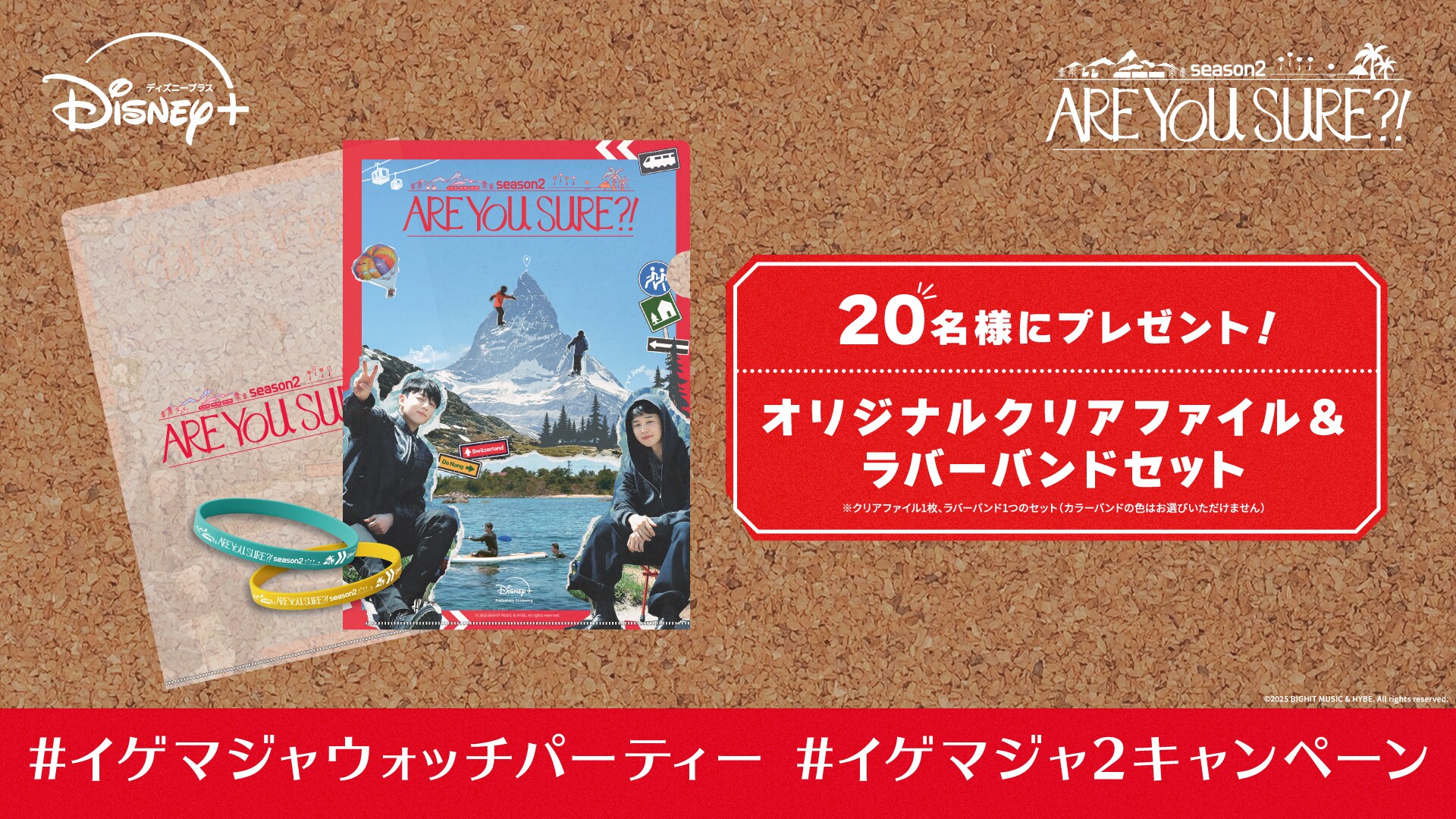 X(Twitter)にて #イゲマジャウォッチパーティー & #イゲマジャ2キャンペーン のハッシュタグをつけて本作の感想や【イゲマジャウォッチパーティー】へのコメントを投稿いただいた方の中から、『Are You Sure?!』オリジナルクリアファイル&ラバーバンドセットを20名様にプレゼント!