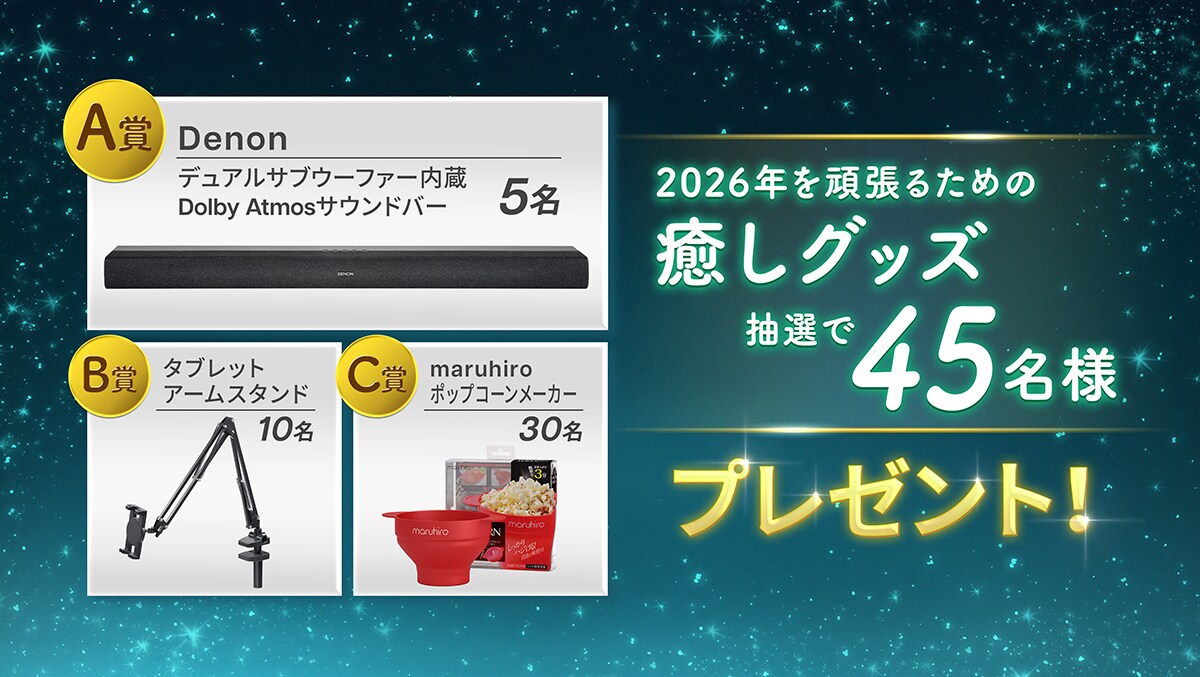 さらに、参加いただいた方の中から合計45名様に、毎日頑張るあなたを癒す豪華賞品をプレゼント。
