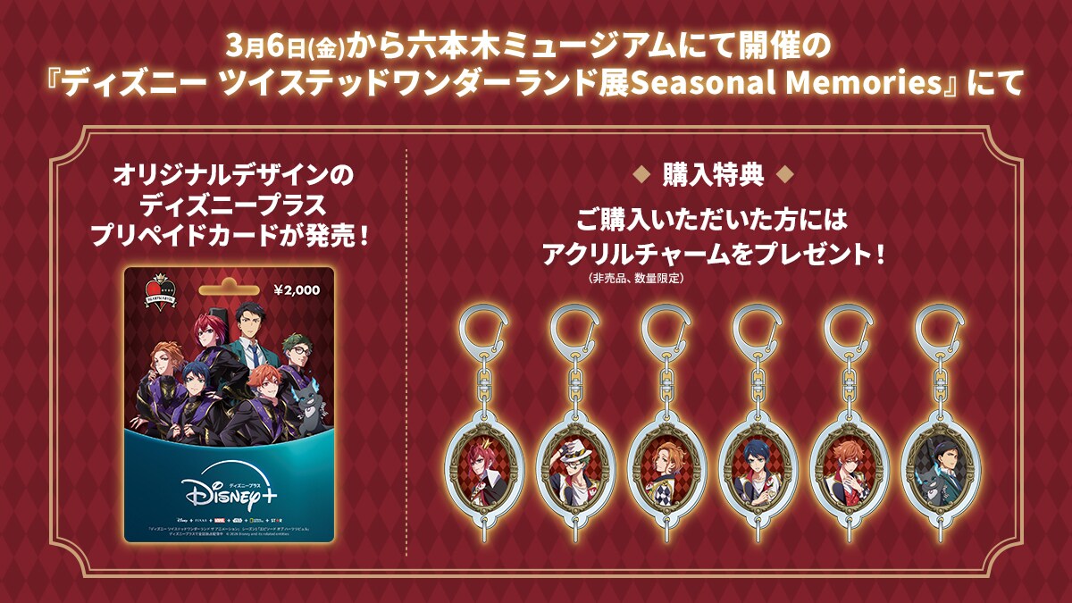 2026年3月6日(金) ~3月29日(日) の期間中、六本木ミュージアムにて開催の『ディズニー ツイステッドワンダーランド展│Seasonal Memories』にて、オリジナルデザインの「ディズニープラス プリペイドカード(金額券)」が数量限定販売!